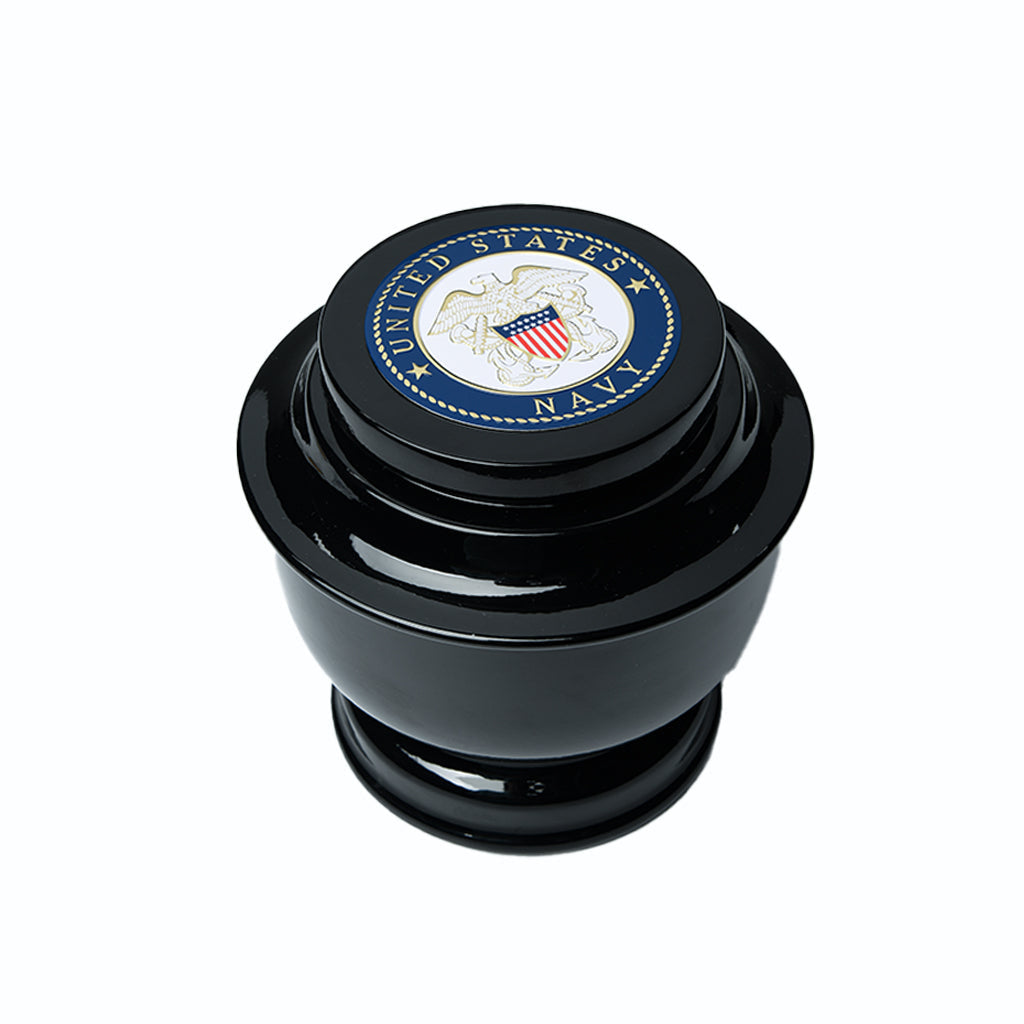 ADULT - Simple Alloy Urn -5-5050- Black with Military Emblem